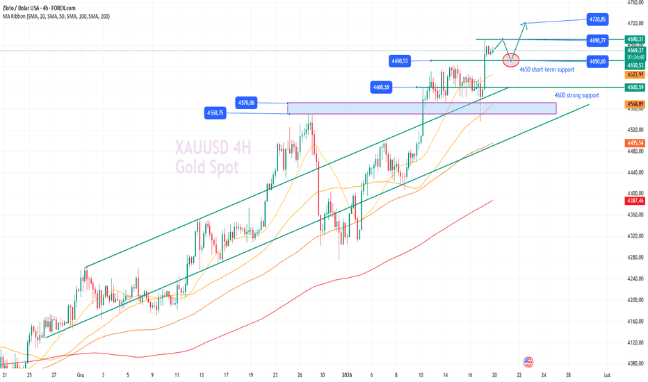 Kontynuuj kupowanie złota, ze stop-lossem ustawionym na 4640 USDKontynuuj kupowanie złota, ze stop-lossem ustawionym na 4640 USD.
