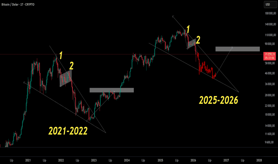 BTC aktualizacjaScenariusz bez zmian. Po wybiciu kurs powinien zakończyć spadki na wsparciu a następnie czas na odreagowanie. Ale tylko w ramach kolejnej flagi. Wg modeli ogólnej płynności coś może się zadziać po 16 lutego jeżeli to w ogóle zadziała na krypto. Na chwilę obecną mamy piąty miesiąc spadków na M1 bez k
