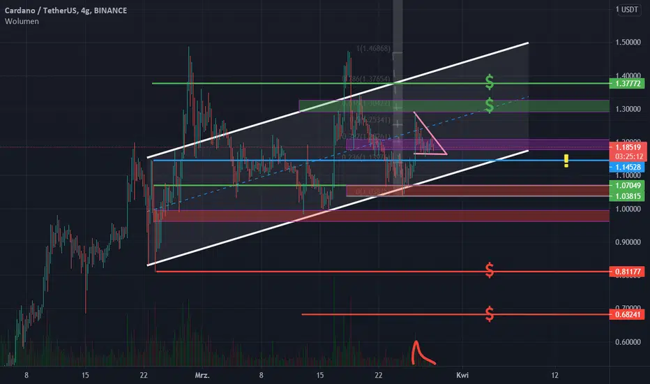 ADA ciągle dobrze się trzyma i przyglądając się dzisiaj kreską mózg podsunął mi wzór chorągiewki (różowy kąt), decydować będzie najpewniej wybicie z fioletowej strefy w którą stronę skieruje się ruch.