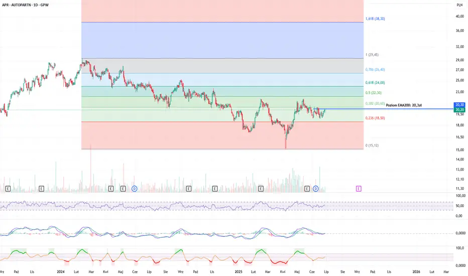 Również zniesienia Fibonacciego wskazują na opór w okolicach 20,6zł czyli 38,2% zniesienia Fibonacciego.