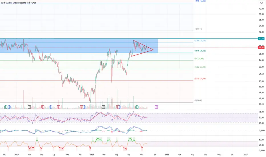 Negatywny scenariusz to wyjście dołem poniżej EMA50 i test EMA200 na 25zł co w efekcie spowodowałoby zejście nawet w okolice 22-23zł. Póki co jednak ten scenariusz odrzucam.