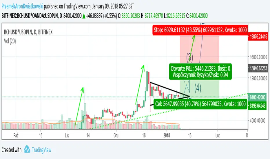 Handel na Bitcoine Cash obecnie znajduje się tym trójkątnym zakresie, który można określić jako konsolidacja po wybiciu z połowy grudnia. Otwarcie pozycji w tym trójkącie wydaje się dobrym pomysłem handlowym. Po wyjściu z trójkąta górą zakładanie pozycji będzie nieco bardziej ryzykowne, ale może również przynieść profity. Jeżeli przebije opór w okolicach 14 000 PLN można spodziewać się wybicia ceny do okolic 19 000 PLN / 22 000 PLN. W nadchodzących dniach będzie miało miejsce wiele pozytywnych wydarzeń, które spekulacyjnie mogą wybić kurs :
