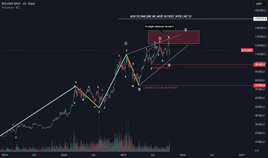 W mojej opinii jesteśmy przed ostatnim ruchem wzrostowym na BTC, którego zasięg (jeżeli oznaczenie falowe jest prawidłowe) nie powinien być wyższy niż 150 k. Następnie spodziewam się korekty, która ma potencjał przerodzić się w bessę (czyli korektę całego wzrostu BTC).
