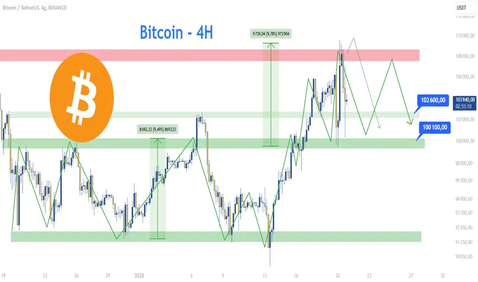 📈 Obserwuj reakcję w pobliżu stref 102 600 USD i 100 100 USD.