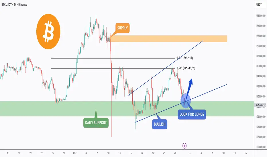 🏹Dopóki to wsparcie się utrzyma, będę szukał okazji do długich pozycji, spodziewając się, że BTC będzie rósł w strukturze klina.