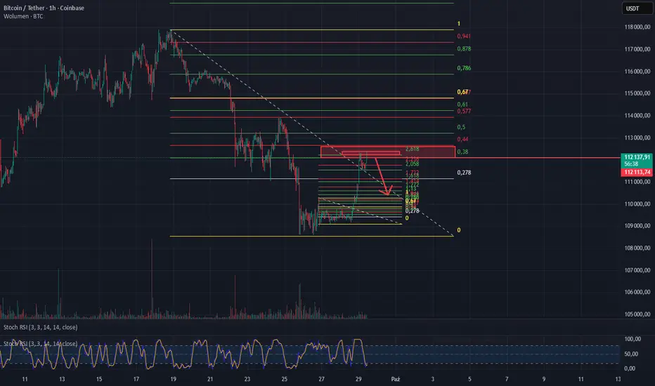 #BTCUSDT - 29.09.2025:klaster dwóch stref fibo, z mierzenia wewnętrznego 0,38 i z mierzenia zewnętrznego 2,618. Możliwa lokalna korekta :)