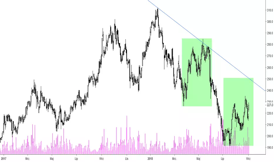 Akcje spółki drożały w trakcie wtorkowej sesji o około 4%. Była to druga sesja wzrostowa z rzędu, jednak odbiciu nie towarzyszą podwyższone obroty. Bezpośrednim powodem zwyżki był opublikowany w poniedziałek wieczorem raport dotyczący przychodów uzyskanych w sierpniu. Można w nim wyczytać, że przychody wzrosły aż o 37% w stosunku do roku poprzedniego i osiągnęły wartość 405 mln zł. W sumie przychody od początku roku rosną już o 16%. Przychody ze sprzedaży internetowej wzrosły w sierpniu o 60%, a od początku roku o 61%. Zaprezentowane wyniki zostały dobrze przyjęte przez rynek oraz analityków. Wykres dzienny wskazuje na szansę kontynuacji korekty wzrostowej trwającej od połowy lipca. Jeżeli wzrosty miałyby osiągnąć porównywalny zasięg z poprzednią korektą to popyt ma otwartą drogę do tegorocznej linii trendu czyli okolic 250 zł.