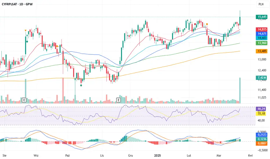RSI z sygnałem zakupu i z przestrzenią do dalszych wzrostów. MACD z sygnałem zakupu.