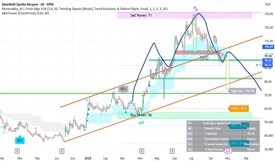 Na wykresie rysuje się moim zdaniem formacja RGR a jej potencjalny zasięg to ok. 75 zł....tam też jest ulokowana dolna linia trendu wzrostowego Kluczowe wsparcie to 83 zł.....