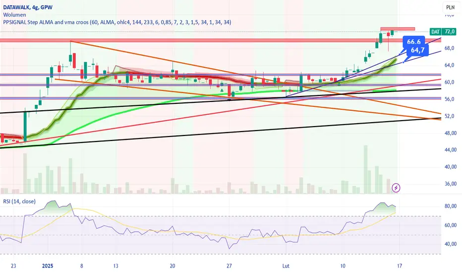 1) wybicie strefy i walka z kolejnym oporem na poziomie 75 zł, którego pokonanie powinno skierować kurs w okolice 86 zł.