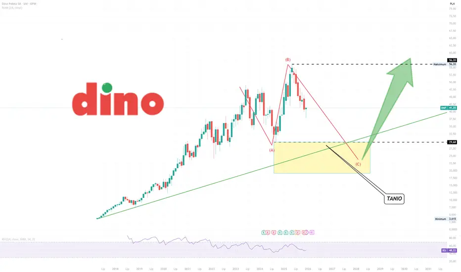 Każda korekta jest okazją do dołączenia do trendu, ale żeby dołączyć TANIO, to potrzebujemy przynajmniej korekty 50%. Jest szansa, że taką dostaniemy, dlatego pilnuję wybicia dołka 29,68zł i tam będę szukał sygnału łamiącego lokalny trend spadkowy, a potencjalne wzrosty mogą dosięgnąć nawet 100zł.