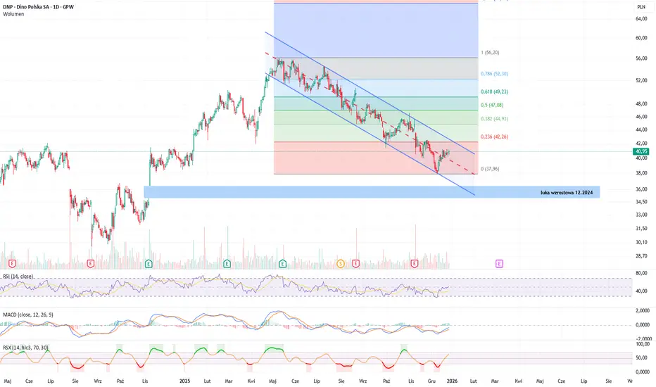 Negacją scenariusza wzrostowego będzie odbicie od 42,2zł i powrót w dół zgodnie z ruchem kanału spadkowego w kierunku już 36zł.