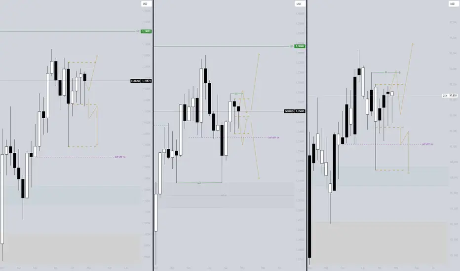 EU - częściowo plan już został rozpoczęty na wewnętrznym range i mamy obronę tego range razem z aktywnym SMT d1, dlatego sądzę, że teraz celem staje się high złotego range. Powrót do shortów HTF dopiero, gdy cena wykaże dużą słabość schodząc i utrzymując się poniżej 50% złotego range. Jednak bardziej oczekuję setupu zgodnie z d1.