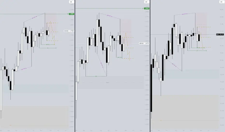 DXY - utworzone range tylko dodają jakości od setupu, dlatego, że jest więcej znaczącej płynności. Range rozgrywam jak zwykle, zbiórka range high/low -> powrót do 50% -> przebicie i obrona następnego POI to kontynuacja do 100% -> brak przebicia 50% i obrona POI w drugą stronę, to kontyuacja kierunku. Jednak mimo wszystko bardziej wolałbym zobaczyć zbiórkę SSL na EU lub GU.