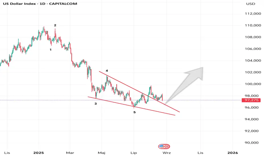 DXY tworzy formację, którą wielu zignoruje jako „kolejny klin”. Ale co, jeśli to nie technika, tylko ślad ukrytych przepływów?