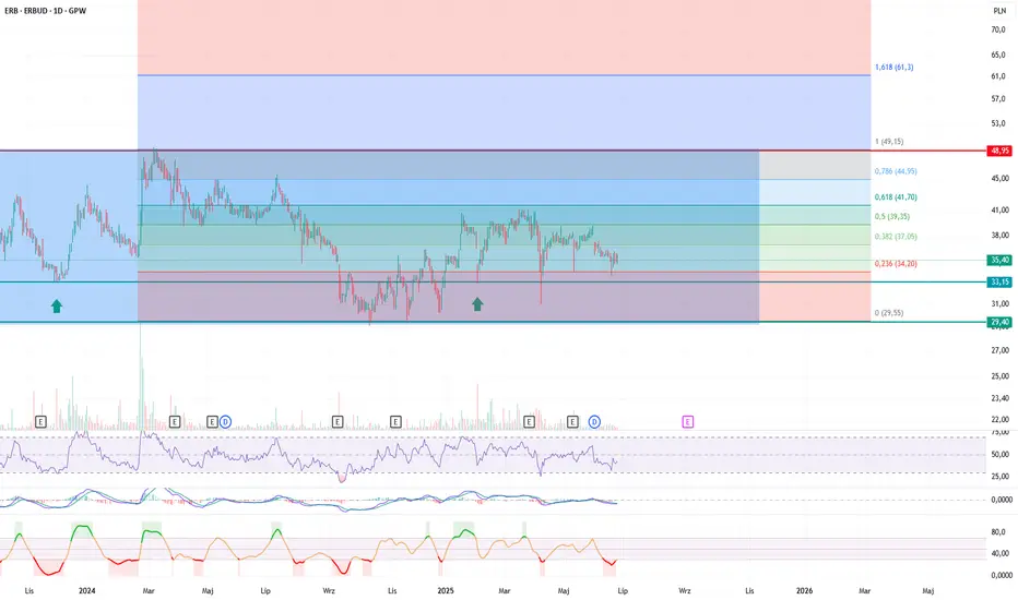 Kurs akcji od 2022 roku porusza się w szerokim kanale konsolidacji między 29,4 a 49zł.