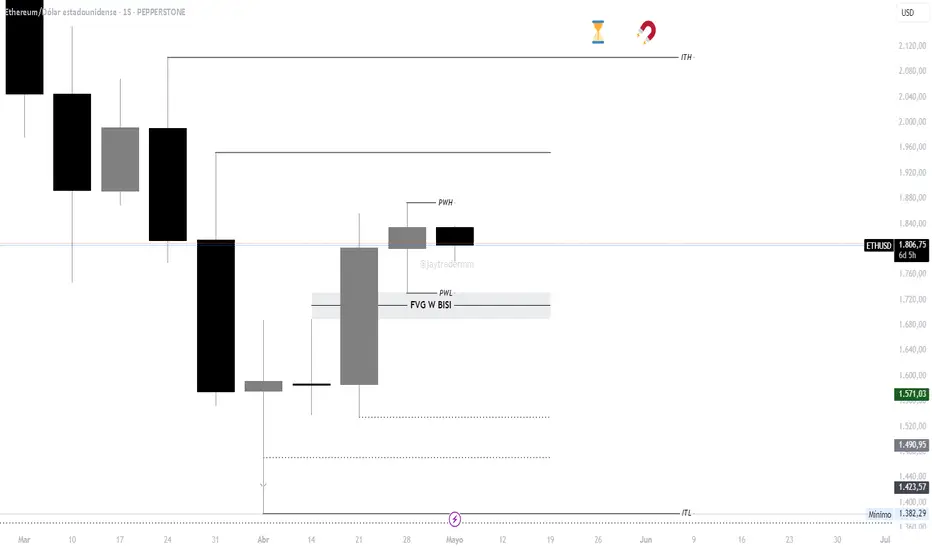 Se cumplió el objetivo: creación de un FVG BISI alcista semanal → gran señal para la continuación del movimiento.