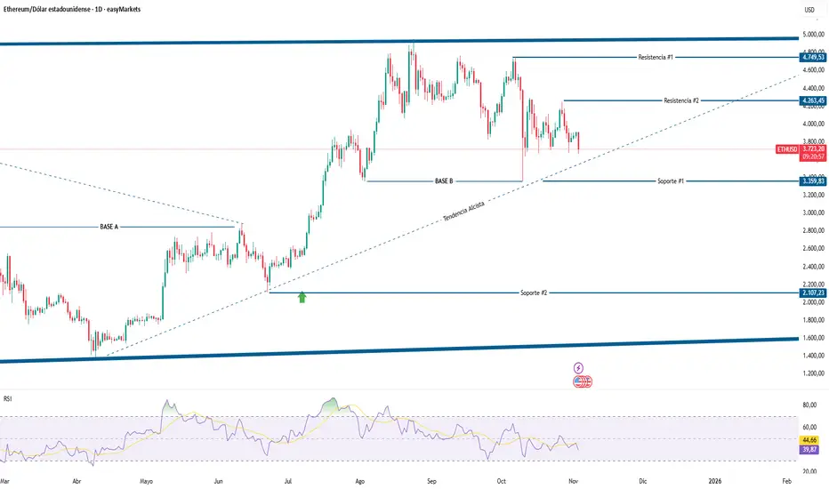 La criptomoneda Ethereum (ETHUSD) continúa dentro de una tendencia alcista sólida durante las últimas semanas. Aunque el precio ha mostrado lateralidad cerca del nivel de 4,749, los movimientos recientes reflejan una presión compradora constante, lo que podría generar oscilaciones entre el soporte #1 y la resistencia #2 a lo largo de la semana.