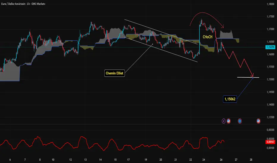 Basse (priorité): Maintien sous 1,1650 → la tendance principale reste baissière. Franchissement de 1,1500, risque jusqu'à 1,15062 et possiblement plus bas.