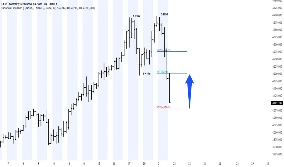 240 min perspektywa czasowa pokazuje na możliwy trade z XOP = 4080,9 do OP = 4202. Zobaczymy jak to się rozegra
