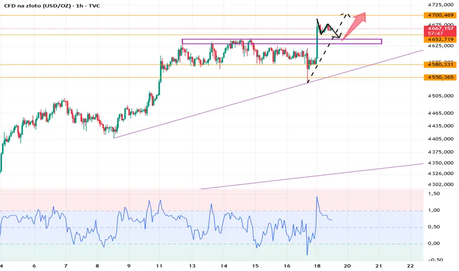 Wykres godzinny pokazuje konsolidację na wysokim poziomie. Obecnie każde cofnięcie jest stosunkowo ograniczone, a zarówno maksima, jak i minima mają tendencję wzrostową. Zwróć uwagę na zmiany nastrojów rynkowych podczas sesji amerykańskiej. Na tym etapie nie da się przewidzieć szczytu; możemy skupić się jedynie na tym, czy nastąpi znaczące cofnięcie na psychologicznym poziomie 4700.