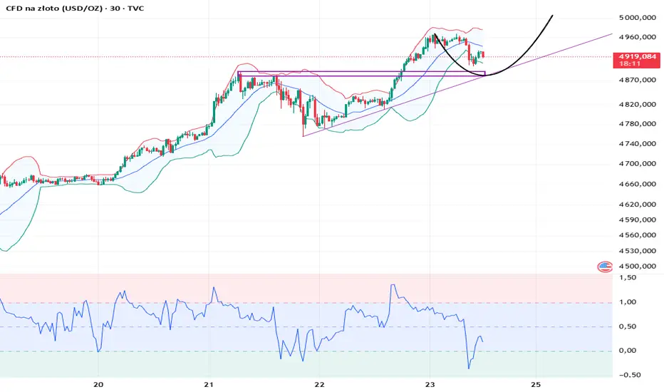 Cena złota silnie wzrosła w sesji azjatyckiej, celując w poziom 5000. Wsparcie średniej kroczącej stopniowo przesuwało się w górę, a cena osiągnęła szczyt na poziomie około 4967, po czym nastąpiła lekka korekta. To, czy rynek nowojorski utrzyma się na poziomie 4900, jest kluczowe dla kontynuacji trendu, czy też zakończy się realizacja krótkoterminowych zysków. Wykres dzienny pokazuje kolejne wzrosty, wzmacniając bycze perspektywy techniczne. Cena porusza się w kanale wzrostowym. Obecna sytuacja na rynku reaguje zarówno na informacje, jak i czynniki techniczne. Należy zauważyć, że obecnie cena znajduje się w strefie wykupienia, ale nie utworzyła się jeszcze żadna formacja szczytowa. Nie należy spekulować na temat tego, gdzie znajduje się szczyt. Krótkoterminowe korekty nie są powodem do paniki; należy spodziewać się powrotu do trendu wzrostowego po ustabilizowaniu się ceny.