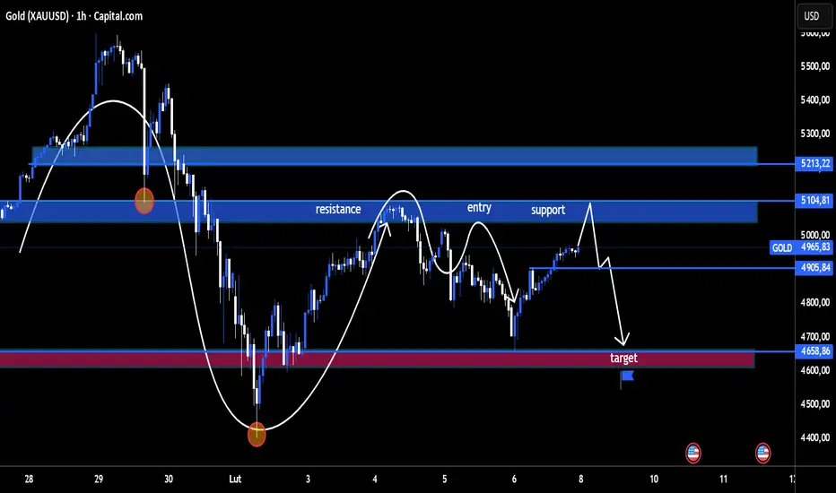 To jest pullback do strefy oporu w trendzie spadkowym, a nie zmiana trendu. Dopóki główna strefa oporu nie zostanie odzyskana, wzrosty pozostają okazjami do sprzedaży.