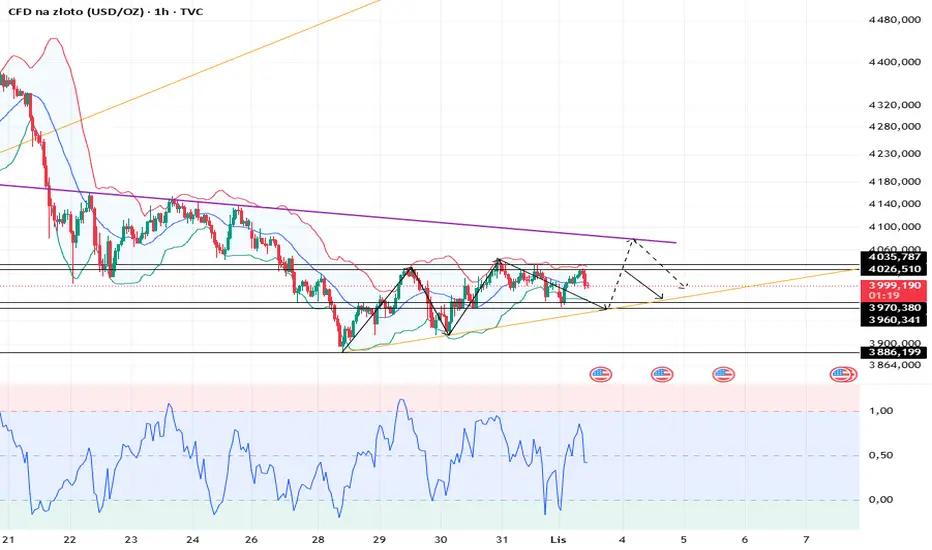 Opór na wykresie 1-godzinnym: 4025, wsparcie: 3970.