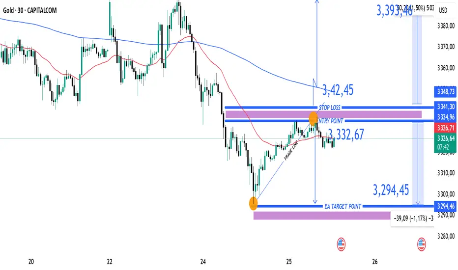 Take Profit – Scenariusz spadkowy (EA Target): 3 294,45 USD
