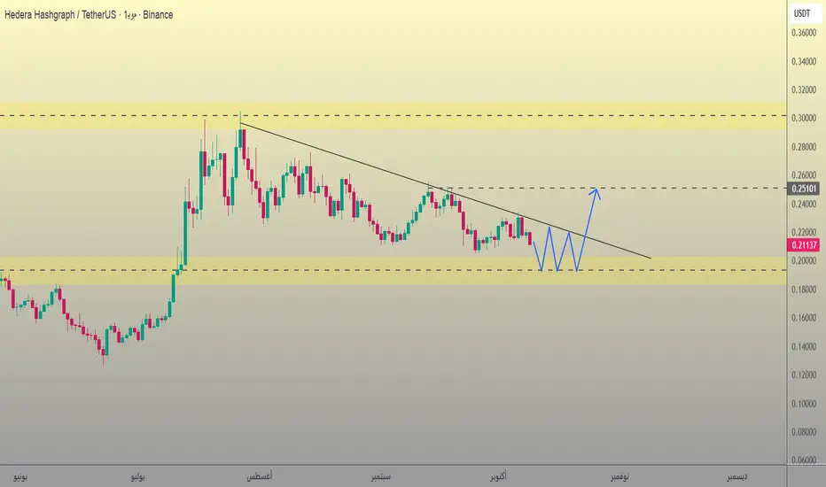 حالياً، يتداول HBAR/USD ضمن قناة صاعدة، مع دعم عند 0.25000 والهدف التالي قرب 0.19400.