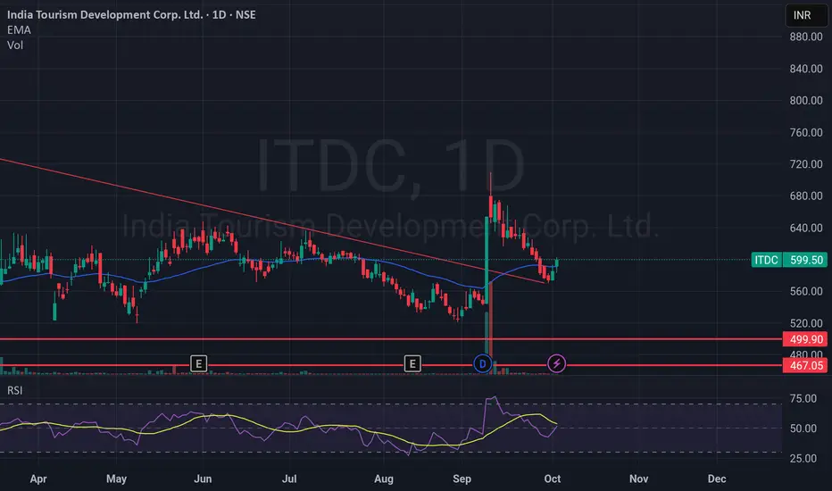 Chart & Instrument:** India Tourism Development Corp. Ltd. (ITDC) - NSE, 1D Timeframe