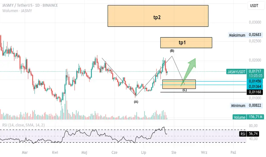 Witam. W ramach pojawiających się sygnałów na altach na potencjalny wzrost, sprawdziłem kilka altow pod kątem struktur wzrostowych. Jednym z nich jest JASMY który spowolnił trend spadkowy i narysował potencjalna strukturę na wzrosty. Wyznaczyłem strefę zakupowa oraz poziomy do obserwacji – po ich zaliczeniu trzeba poczekać na sygnał w postaci formacji świecowej oraz niskiego odczytu RSI. Dodatkowo naniosłem strefy oporu jako potencjalne TP dla pozycji. Pozdrawiam