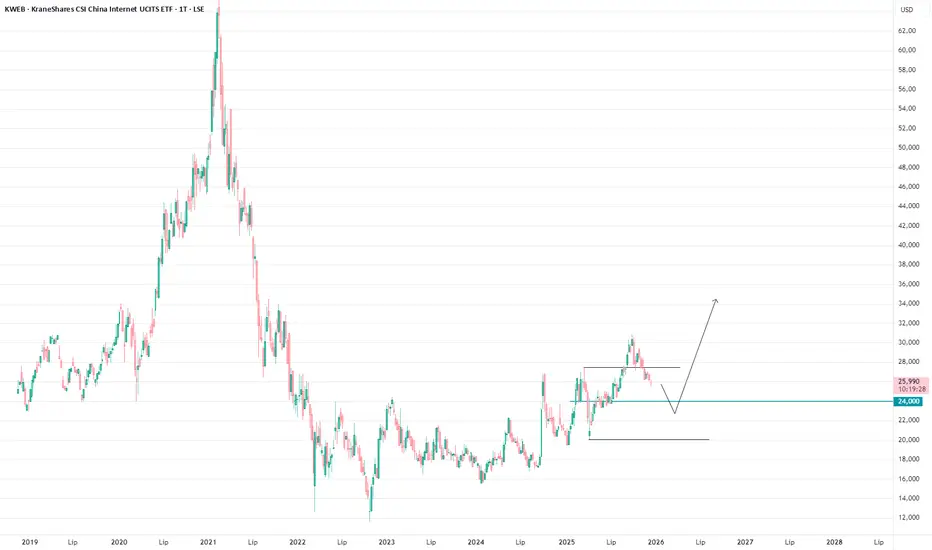 Wygląd wykresu daje przewagę na długoterminowy wzrost. Teraz należy czekać na odpowiedni moment handlu, który zależ od podejścia do ryzyka. Jeśli korekta pogłębi się w okolice 24-25 będę zajmował pozycję.