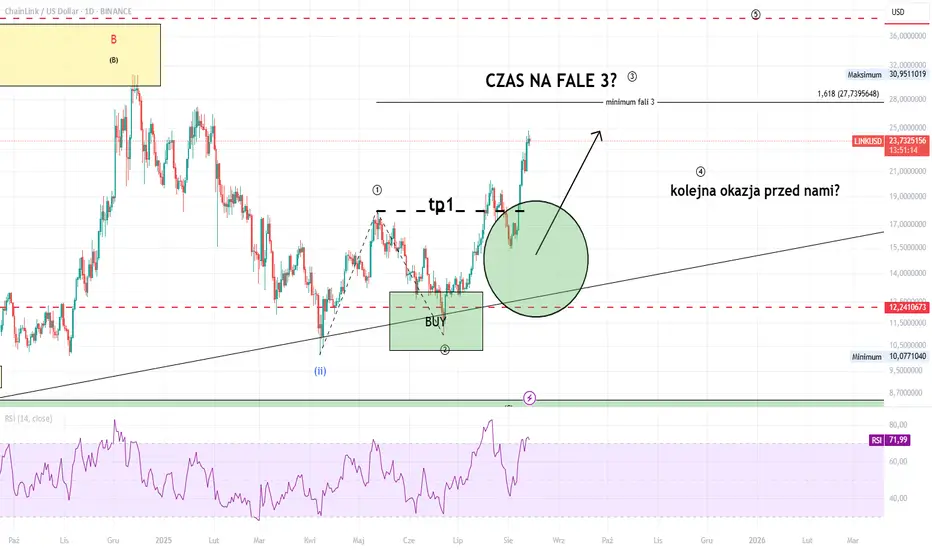 Poprzednie analizy zrealizowały założenia dalszych wzrostów czy przed nami kolejna okazja? Możliwe że tak ale są warunki. Mianowicie wzrost jest zbyt mały bo go traktować z dużym przekonaniem iż to fala 3 więc potrzebujemy kontynuacji do minimalnie 27.70USD. Jeżeli otrzymamy wymagany wzrost to będzie dla nas informacja o nadchodzącej okazji na fale 4. Wtedy wracam do wykresu i opublikuję strefę na falę 4. Czekamy