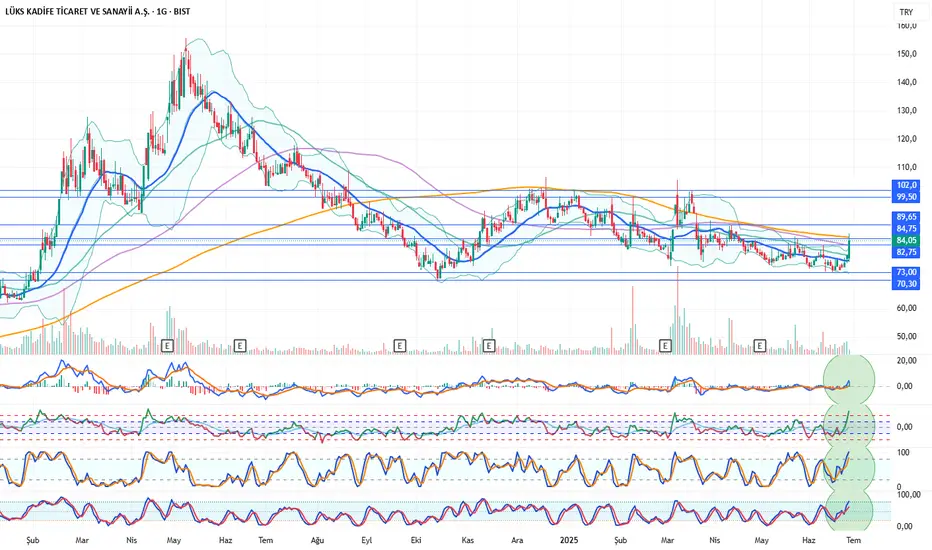 Günlük teknik indikatörler Pozitif. Hisse Piyasalarında etkisiyle pozitif olmuş 21 günlük fiyat ortalamasının üzerinde güçlü kalarak 82,75 direncinin üzerinde kapanış gerçekleştirmiş durumda. 89,65 direncinin üzerinde kapanış yapabilir ise 200 günlük fiyat ortalamasının da üzerine çıkmış olur. İndikatörlerinde pozitif göstermesi ve tepe seviyesine şimdilik gelmemesi hisse de pozitif hareketin devam etme ihtimalini artırıyor.
