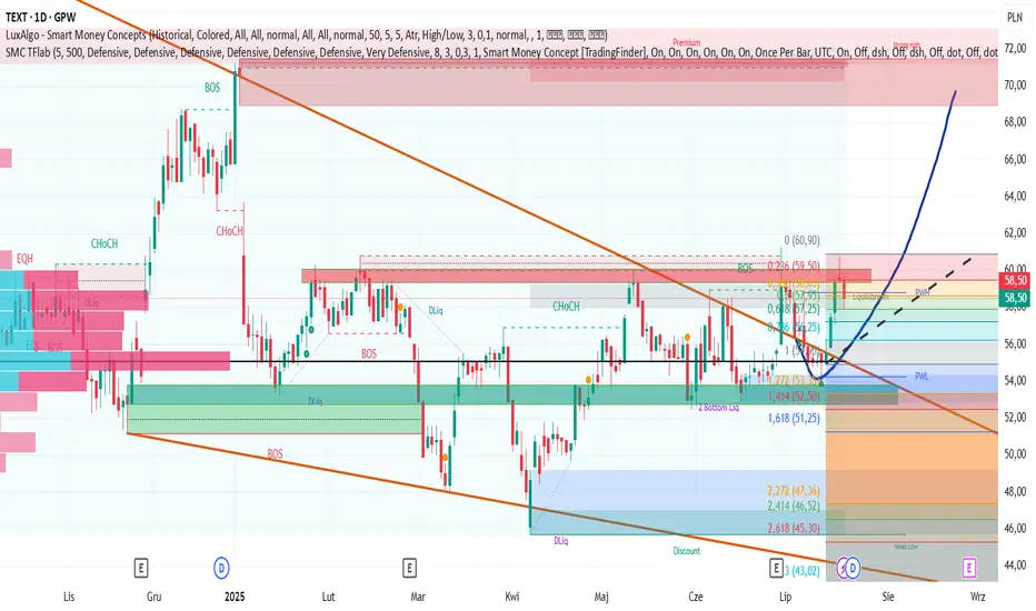 Warto spojrzeć na strefy zniesienia Fibo....zakładając 3 dniową korektę i zniesienie 50% wzrostów - korekta ta powinna zakończyć się w okolicy 57,2 zł.