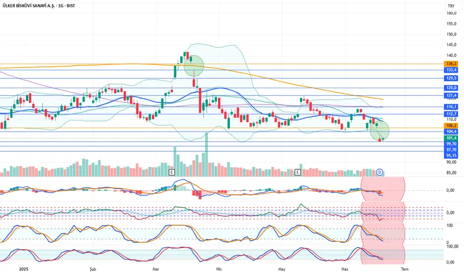 Günlük teknik indikatörler Negatif fakat alt konuma kadar inmiş durumda ve hisse 99,70 destek seviyesinden toparlanma görüntüsü gösteriyor. Temettü dağıtımından sonra hesaplara geçecek olan miktarların tekrar bu seviyelerden hisseye girebileceğini düşünüyoruz. 106,20 seviyesinde oluşan fiyat boşluğunu kapatabileceğini düşünüyoruz.