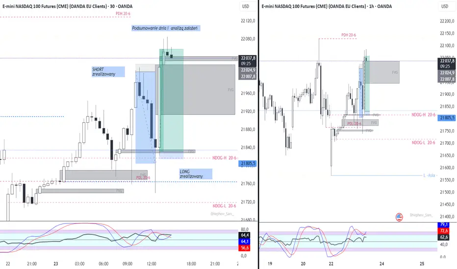 Podsumowanie dnia 23.06.2025 – NQ100 Open NY - Analiza założeń