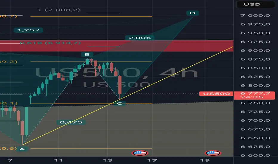 Układ harmoniczny Bearish Butterfly z punktem D w rejonie ~7000 punktów.