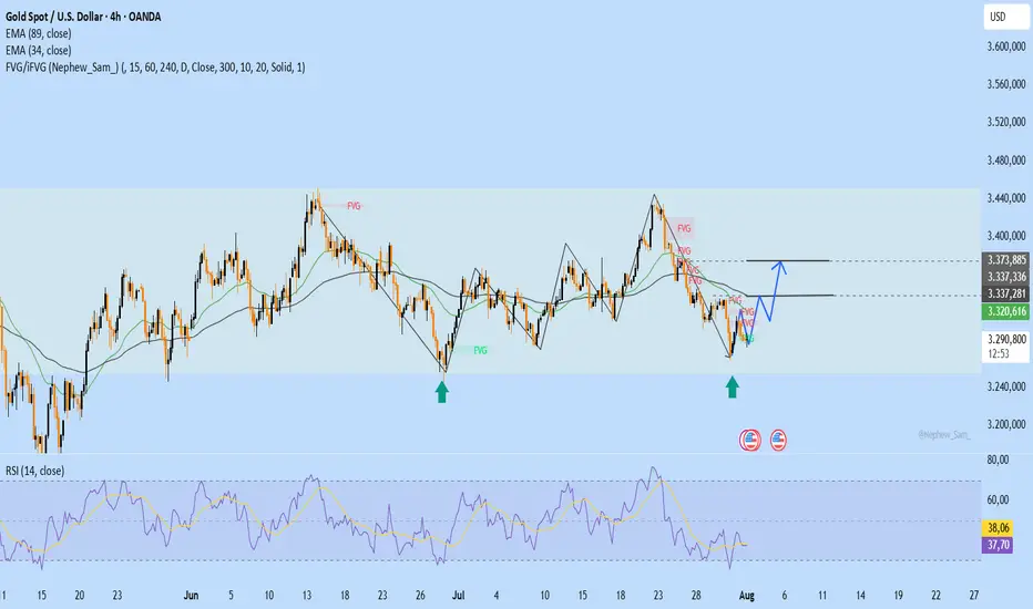 Auf dem H4-Chart reagiert XAUUSD positiv, durchbricht den kurzfristigen Abwärtstrend und bildet ein W-förmiges Umkehrmuster. Der RSI steigt aus dem überverkauften Bereich – ein klares Erholungssignal.