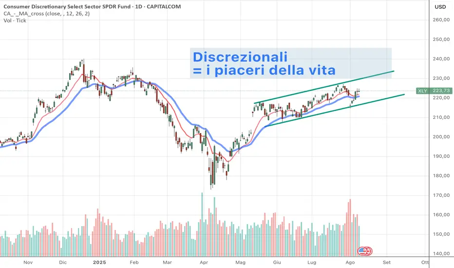 Il settore Consumer Discretionary (o beni di consumo ciclici) include aziende che producono beni e servizi non essenziali, come automobili, abbigliamento, intrattenimento, viaggi e ristorazione. Queste società dipendono fortemente dalla spesa discrezionale dei consumatori, che tende a aumentare durante periodi di crescita economica e a diminuire durante recessioni o periodi di alta inflazione. Il settore è ciclico e sensibile ai tassi di interesse, alla fiducia dei consumatori e alle condizioni macroeconomiche.