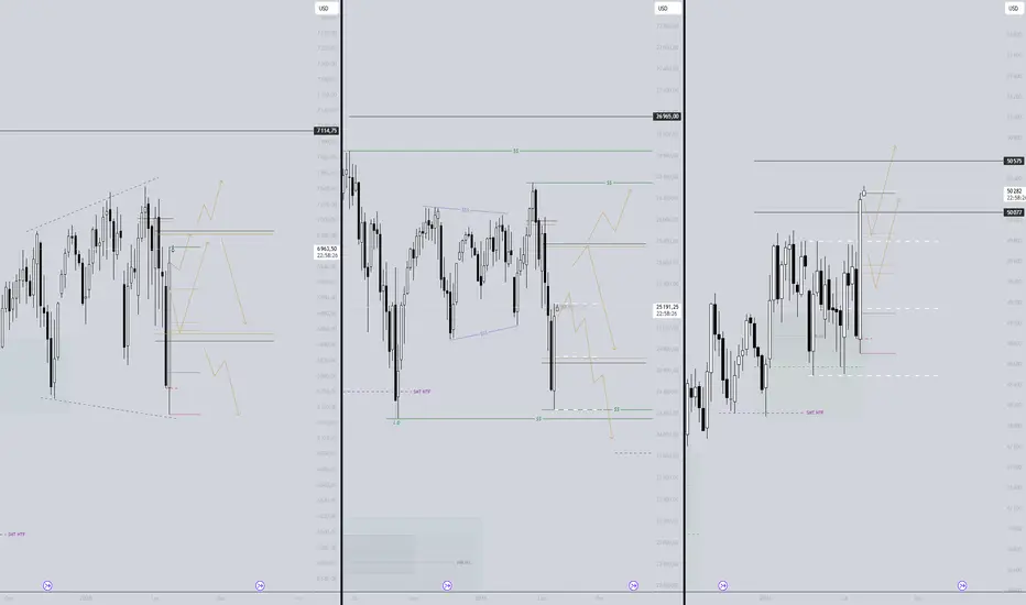 NQ - sztafeta z etapami na NQ wygląda nieco inaczej. Mamy range, który zakończył się w IMB 1D. Patrząc na cały układ tygodniowy, bardzo chciałbym, żeby cena go respektowała i nie uciekła zbyt wysoko, żeby opierać na nim dalszą drogę. Natomiast jeśli cena z niego stanowczo wyjdzie, wtedy zaczekam tak jak na ES, co cena zrobi przy górnym knocie 1W. Kilka krótkich etapów, które złożą nam się w całość.
