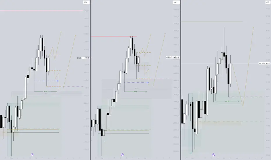 NQ - jeśli long ma zostać utrzymany z obecnych POI, cena musi wyjść z tego range górą a następnie obronić strefę od początku do połowy tego range. Standardowa rozgrywka range. Jeśli nie wykażą się siłą i zejdą poniżej 50%, wtedy oczywiście patrzę za kierunkiem spadkowym śledząc orderflow h1-h4.