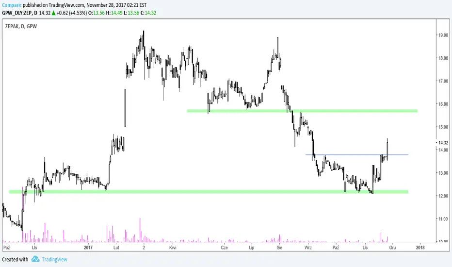 Po kilku dniach płaskiej konsolidacji swoją siłę potwierdził także ZE PAK. Spółka rośnie od czasu publikacji raportu za trzeci kwartał. Wczoraj wzrosty sięgnęły 4,5% przy wysokich obrotach. Oznaczało to wyjście na nowe maksima trwającego odbicia. Najbliższym celem popytu jest obecnie poziom okoli 15,70 zł. Kilka dni temu pojawiła się pozytywna informacja, jeden z domów maklerskich podniósł wycenę spółki do 20,20 zł, podtrzymując rekomendację kupna.