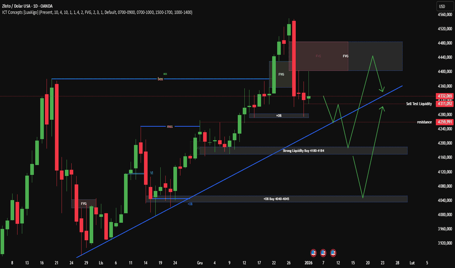 XAUUSD D1 – Lucy: Cena "testuje" płynnośćPreferuję czekać na ZAKUP 4180–4184 lub głębiej na 4040–4045 ✨