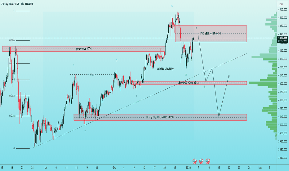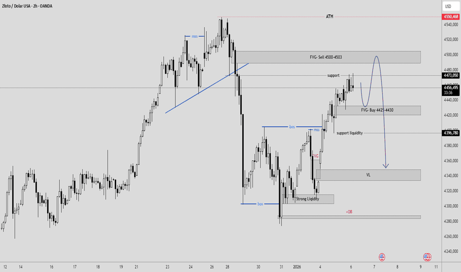 Jeśli cena cofnie się do 4469–4465 i pokaże silną reakcję (ciasne odrzucenie / zmiana), będę szukać wzrostu w kierunku tygodniowego szczytu i kontynuacji.