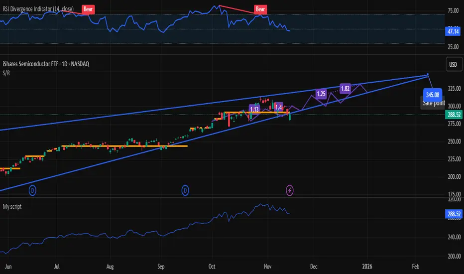 🧠 SOXX ETF – Bearish RSI Divergence Amid Rising Channel | $345 Target or Breakdown?