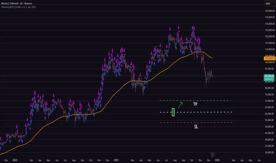 This is crucial: If you bought "expensive" (e.g., at 63,500), your real stop is wider (3,500 points) than if you bought cheap (63,100). Because you filter out expensive entries, you protect your Risk/Reward ratio.
