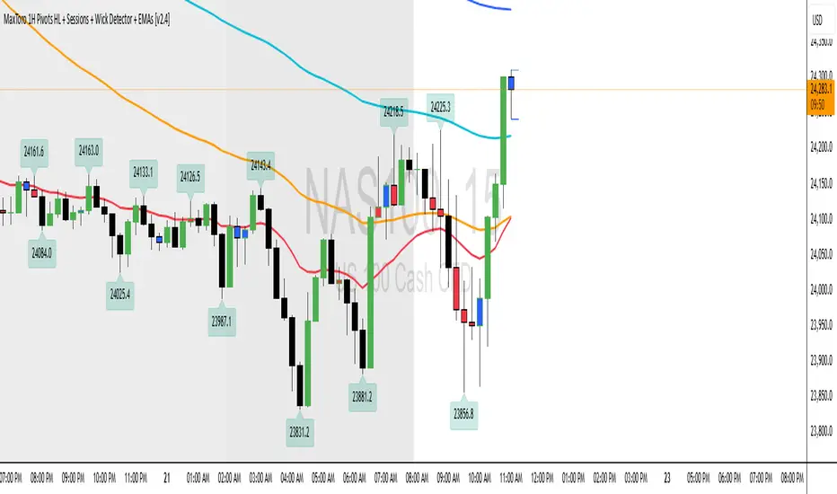 MaxToro 1H Pivots HL + Sessions + Wick Detector + EMAs [v2.4]