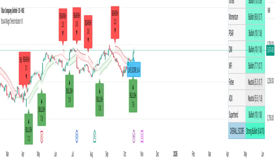 - No Colour Range to indicate Side Ways Trend (in between 4 and 7 score)